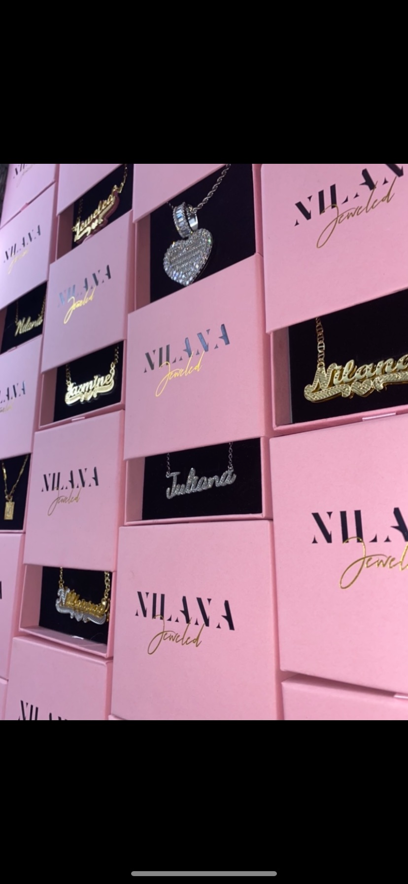 Custom jewelry offered in solid or plated 14k and 18k gold and sterling silver. Shipping time will vary from 14-28 days as all items are custom made to order.